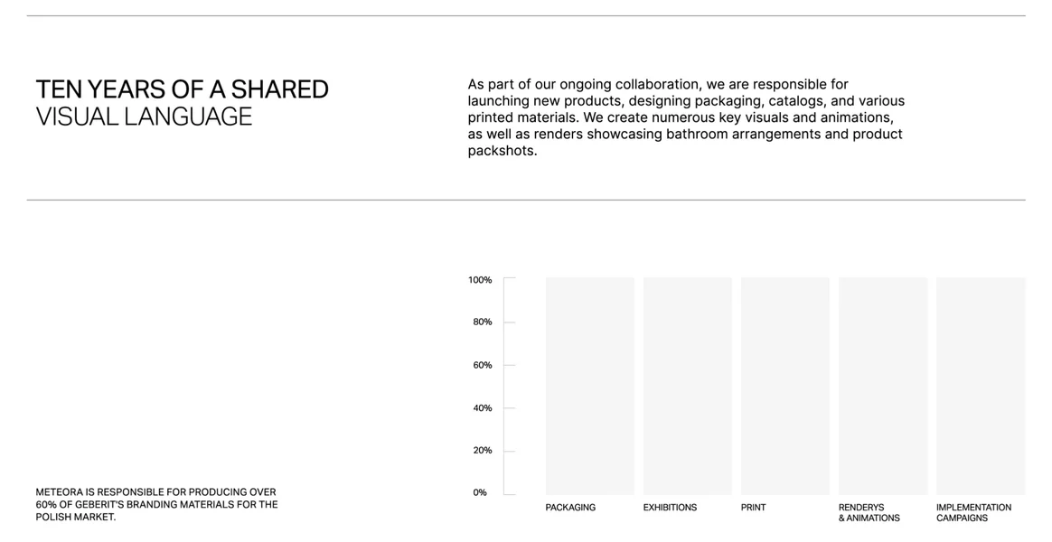 Marka Geberit jest obecna na rynku od ponad 60 lat. Jako niekwestionowany lider w branży sanitarnej i ceramicznej, jest uznawana za jedną z najbardziej renomowanych marek. Meteora z sukcesem współtworzy wizerunek marki od 2015 roku, zapewniając kompleksową obsługę projektową i doradczą.