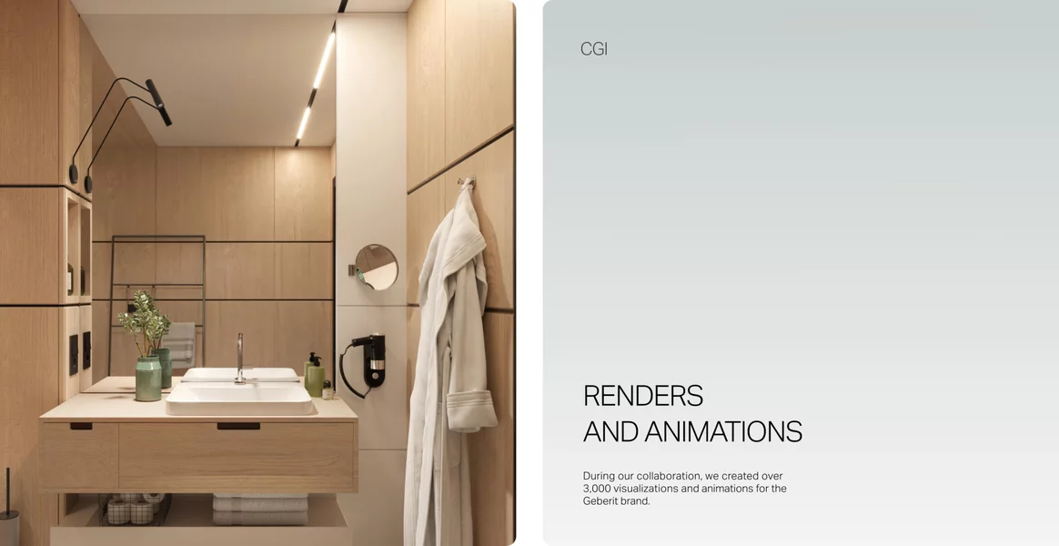 Realizowany dla marki Geberit zakres obejmuje wprowadzanie nowych produktów na rynek, projektowanie opakowań, katalogów i licznych materiałów drukowanych, a także przygotowywanie key visuali, animacji oraz renderów aranżacji łazienkowych i packshotów. Kompleksowość tych zadań wymaga wysokiej elastyczności projektowej, precyzyjnej koordynacji oraz dbałości o spójność wizualną. Kluczowe jest również zaprezentowanie kategorii ceramiki sanitarnej w angażujący sposób i uzyskanie wyrazistej przewagi komunikacyjnej nad konkurencją.