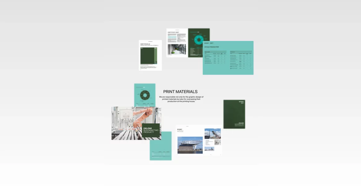 Projektowane są druki wspierające sprzedaż takie jak broszury, katalogi produktowe, materiały na targi i akcje promocyjne oraz druki wielkoformatowe jak billboardy. Każdy projekt prowadzony jest od koncepcji i składu, przez przygotowanie do druku, po nadzór produkcji. Dobierane są papiery, formaty, uszlachetnienia i techniki druku zgodne z budżetem oraz założeniami wizerunkowymi.